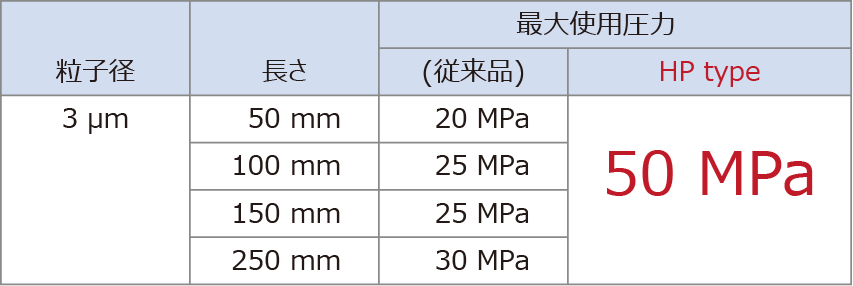 L-column シリーズの充填技術を駆使し、最大使用圧力を引き上げました。
